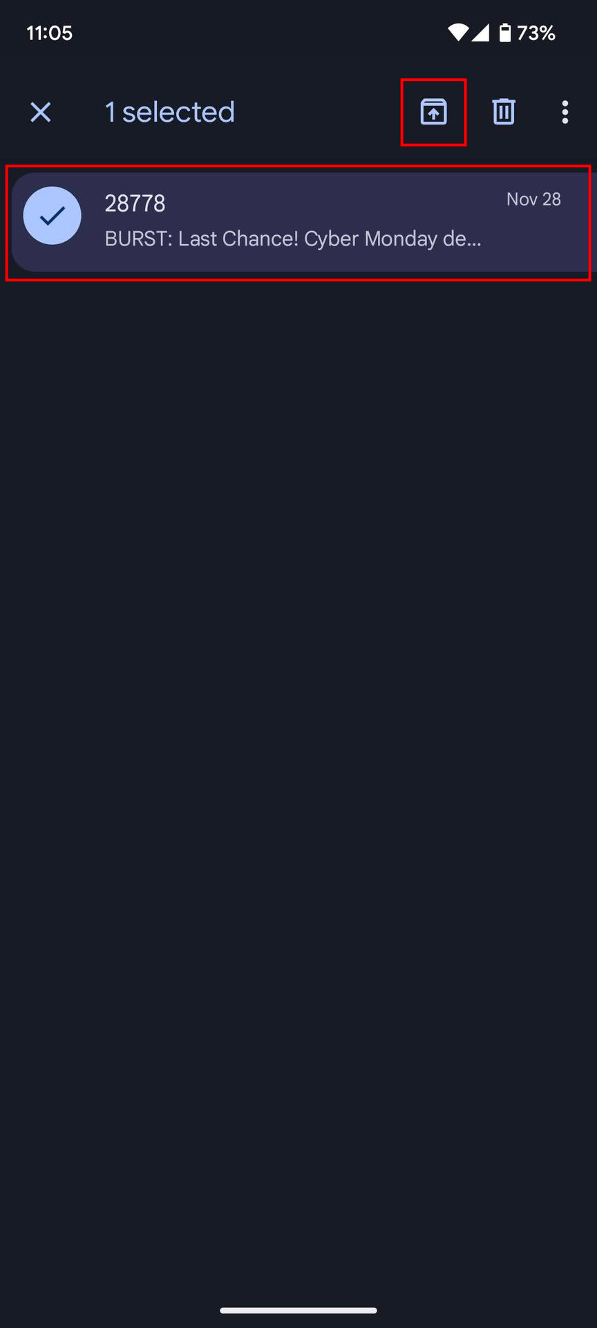 - Tap on the Archive button (box with an arrow pointing down).