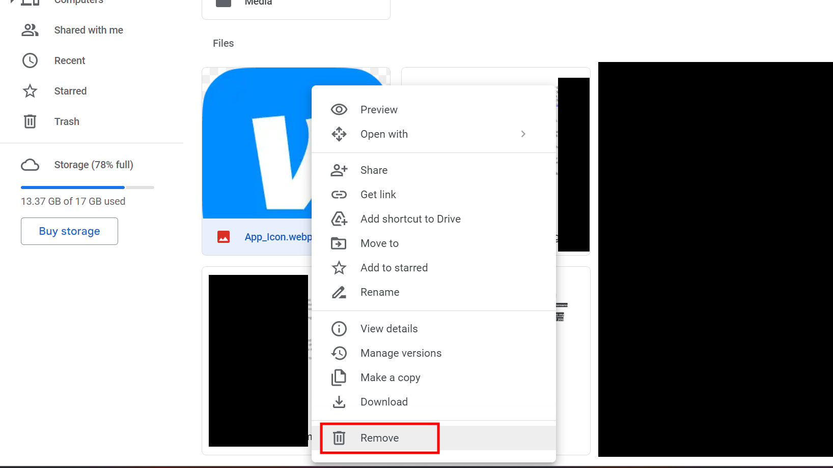 Since storage space is at a premium in the cloud, it’s essential to know how to delete Drive files to clear up space. The easiest option on the web is to right-click on the file or folder and select Remove.